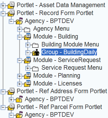 2. Open the portlet and module folders where you want to remove the group.