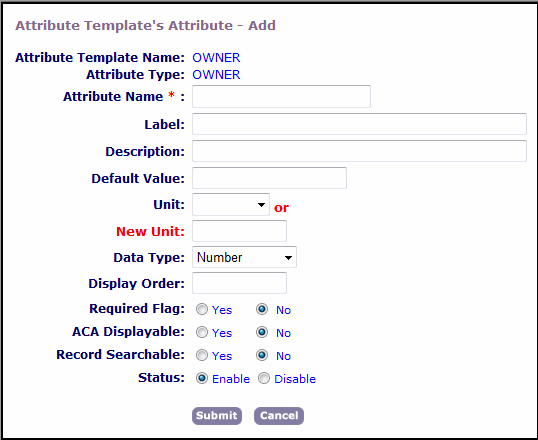 Civic Platform displays the Attribute Template’s Attribute—Add window.