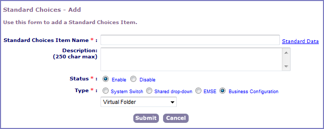 3. Enter the name of the new virtual folder group you are creating in the Standard Choices Item Name field.