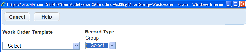 5. Select a Work Order Template or Work Order Type.